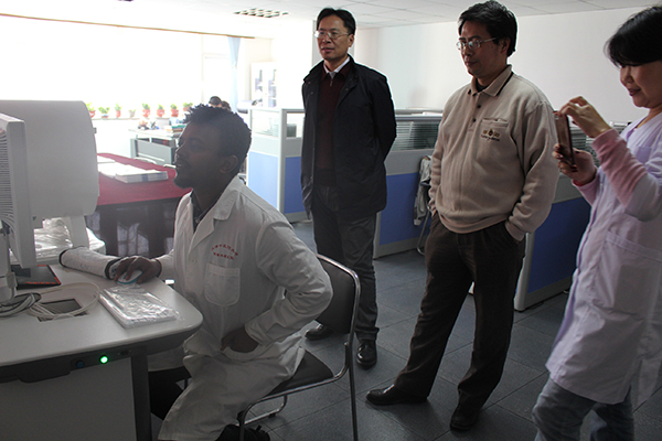 公司領(lǐng)導(dǎo)及于教授與留學(xué)生進(jìn)行交流并指導(dǎo)學(xué)生進(jìn)行實(shí)際操作