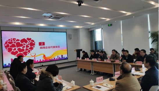 會上,舉行了愛心企業(yè)代表向貧困村的集體捐贈儀式。